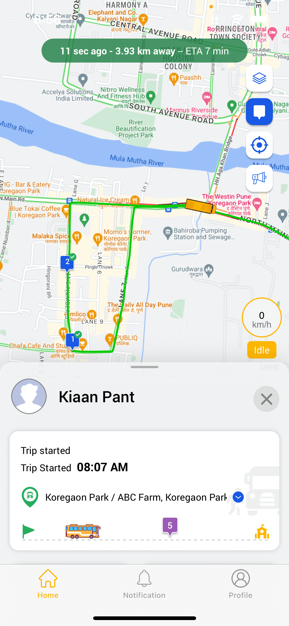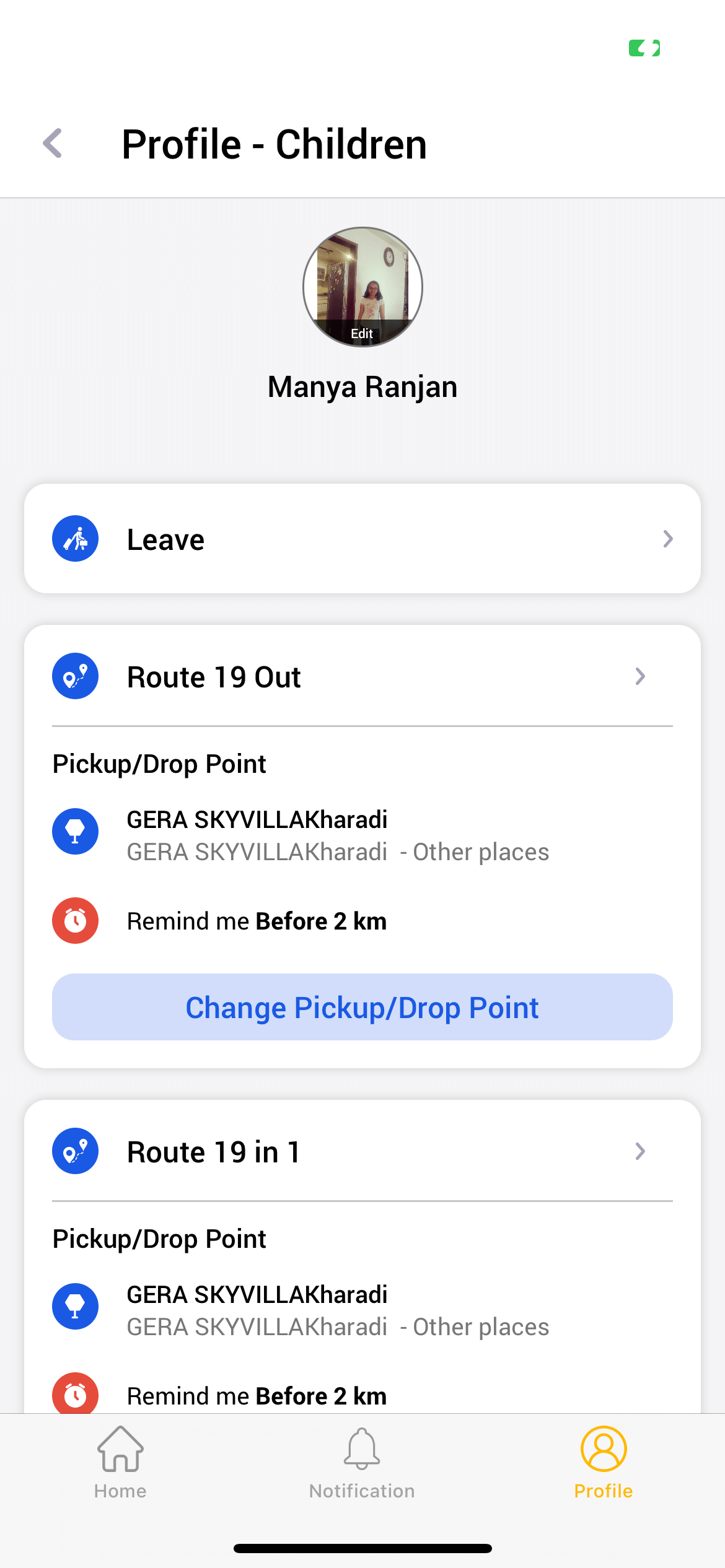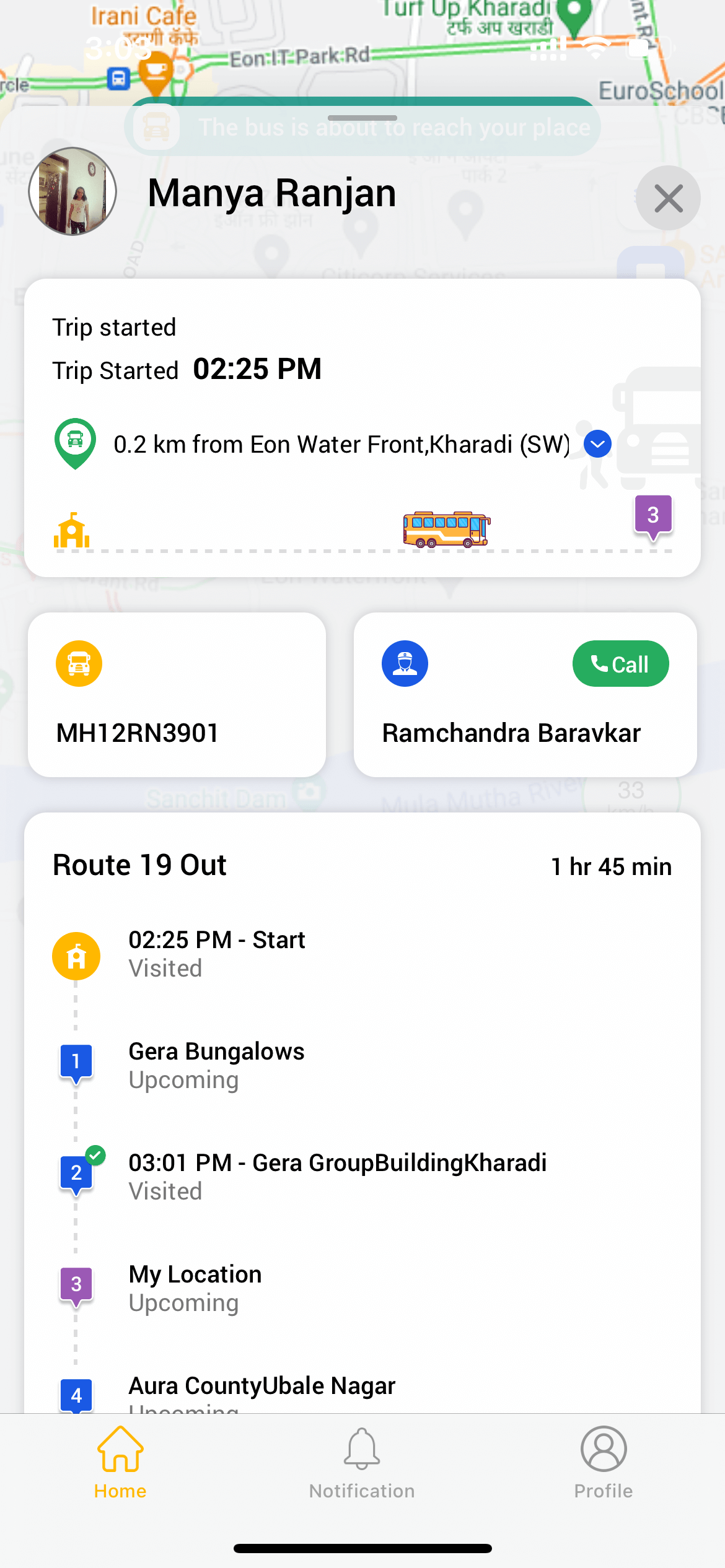 Alerts are sent to parents 2km before the school bus reaches the pick-up or drop point. They also get notifications when bus leaves the school and when bus reach the school