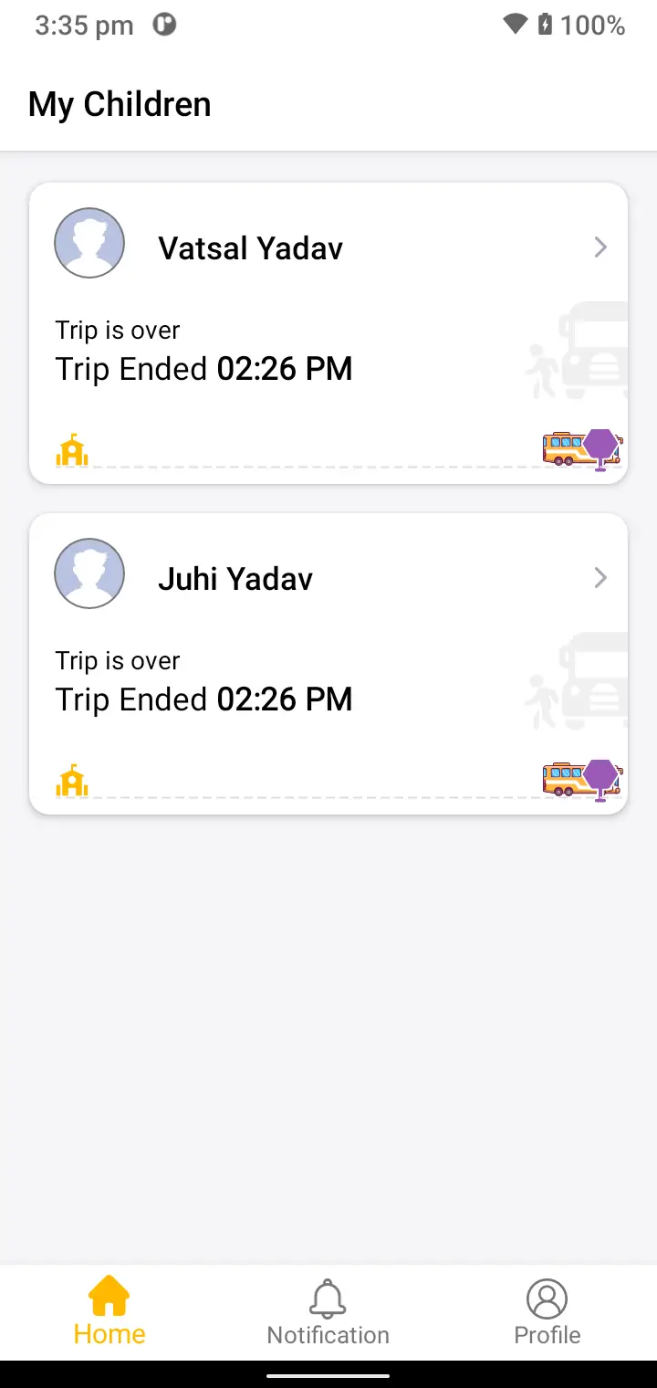 We give live mobile access with our app. Parents can see live location of the bus. Estimated time of arrival. Can call Driver from app directly. They also get instant multiple notifications.